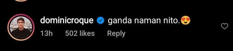 In the comments section, the award-winning actress' partner, Dominic Roque, left a sweet reply on his significant other's photo, saying, “Ganda naman nito.”