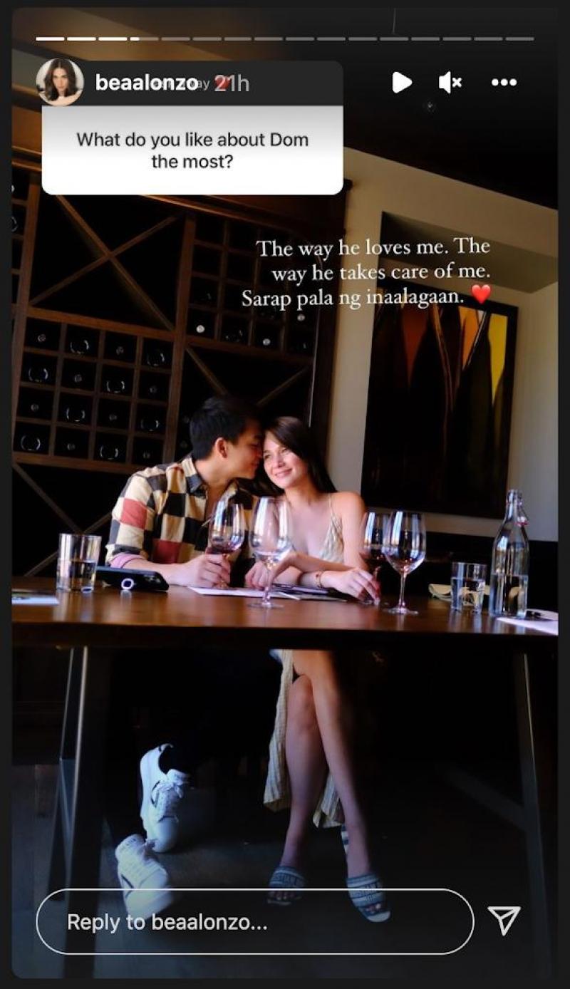 "What do you like about Dom the most?" tanong ng isang fan sa 'ask away' trend sa Instagram Story ni Bea.