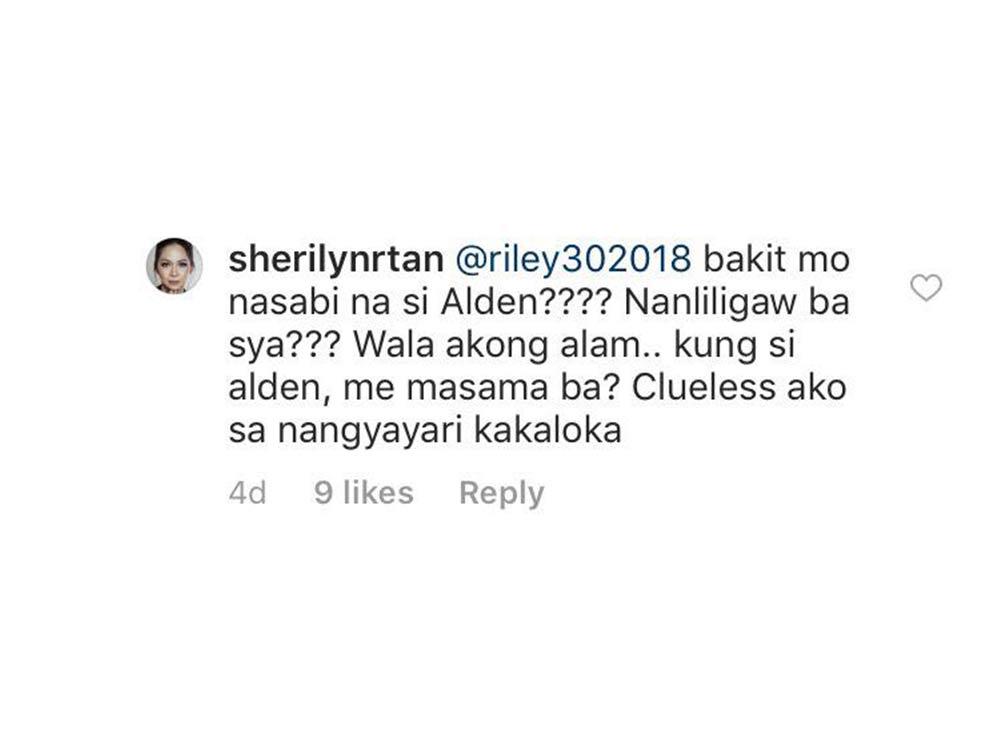 Bea's Mulawin VS Ravena co-star Sherilyn Reyes-Tan commented on the photo and said that she's clueless why netizens are dragging Alden's name in the actress' simple IG post.