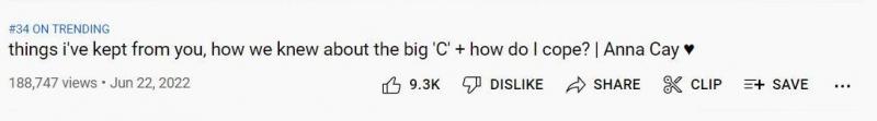Isa sa top trending videos ngayon sa YouTube Philippines ang latest vlog ni Anna na “things i've kept from you, how we knew about the big 'C' + how do I cope?” kung saan ibinahagi niya na tinamaan ng lung cancer ang kanyang ama.