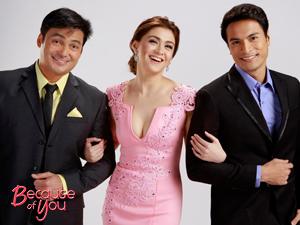 Because of You is headlined by Carla Abellana as Andrea, Rafael Rosell as Oliver and Gabby Concepcion as Jaime.