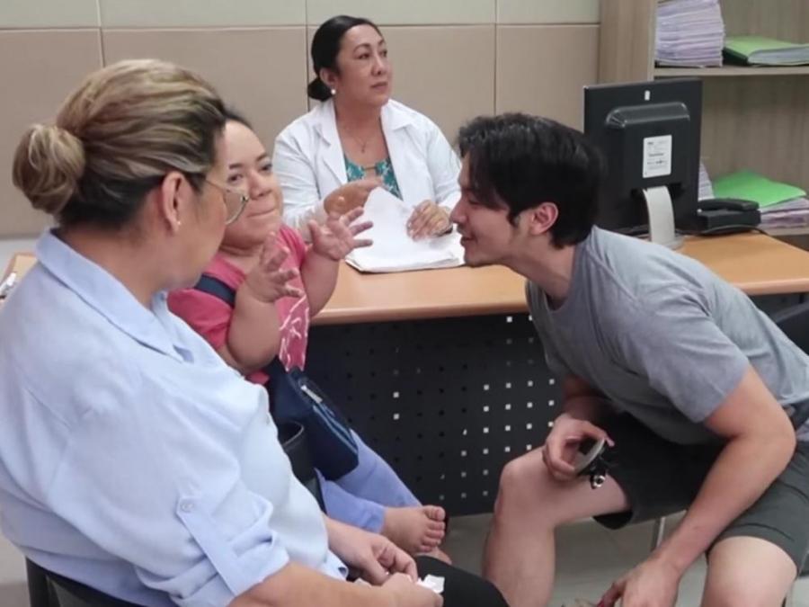 Habang naghihintay para sa next take eksena kasama ang co-stars na sina Jo Berry at Elizabeth Oropesa, hindi napigilan ni Alden na pagdiskitahan ang tsinelas ni Jo.