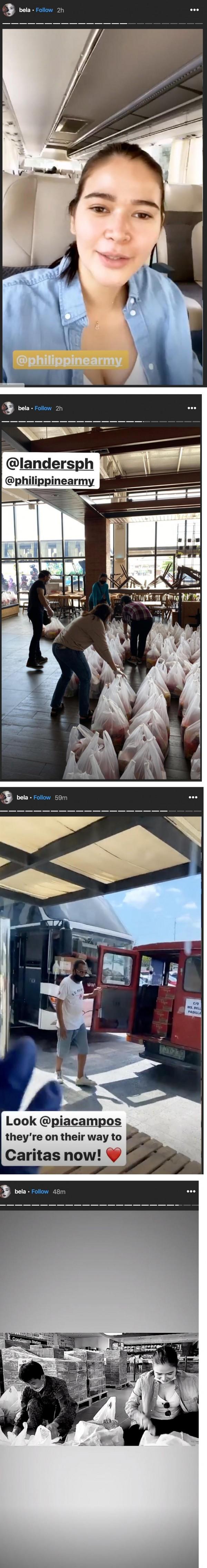 On Instagram Story, Bela shared snippets of her food distribution project in partnership with the Philippine Army and was sent out to different charities like Caritas Manila.