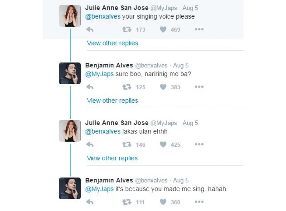 Benjamin Alves and Julie Anne San Jose exchange sweet messages on Twitter