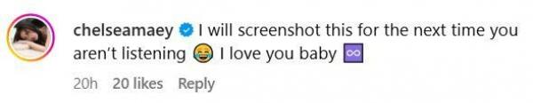 In the comments section, Chelsea replied with a playful message, "I will screenshot this for the next time you aren't listening. I love you, baby."