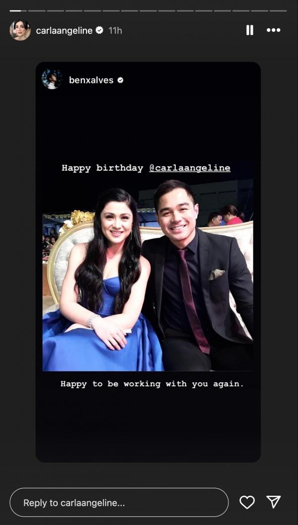 Benjamin posted on Instagram Story a throwback photo with Carla and greeted his leading lady happy 38th birthday.