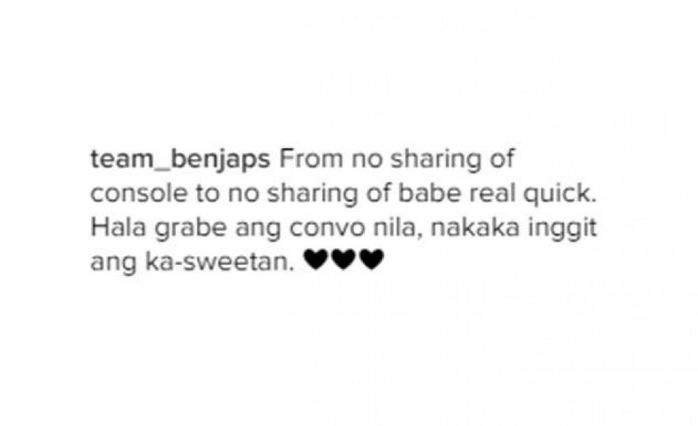 Agad naman nag-reply si Benj, "Ayoko, gusto ko ng sakin. Hahahahha. #nosharing"