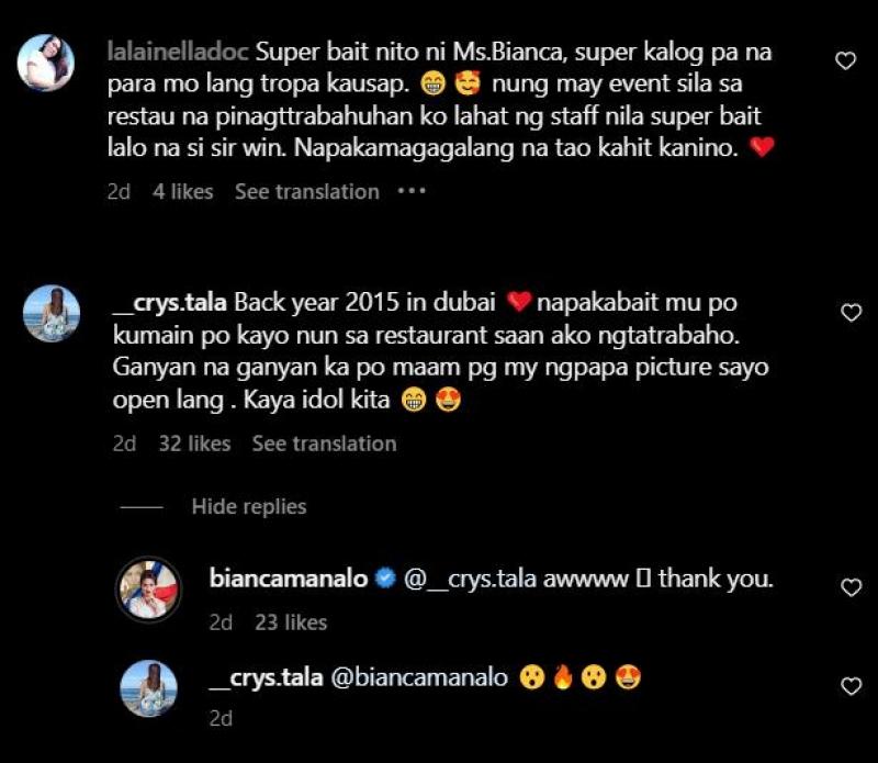 "So I removed my mask sabi ko. Yes po hello po. Then lumapit silang lahat “sabi sayo si Miss Bianca e, pwede po ba pa picture?” Of course! Uuwi na daw sila galing Dubai.