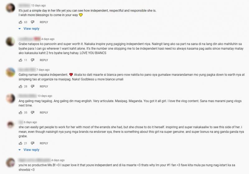 Sa comment section, hinangaan si Bianca ng mga nakapanood ng kanyang vlog dahil sa pagiging independent niya.