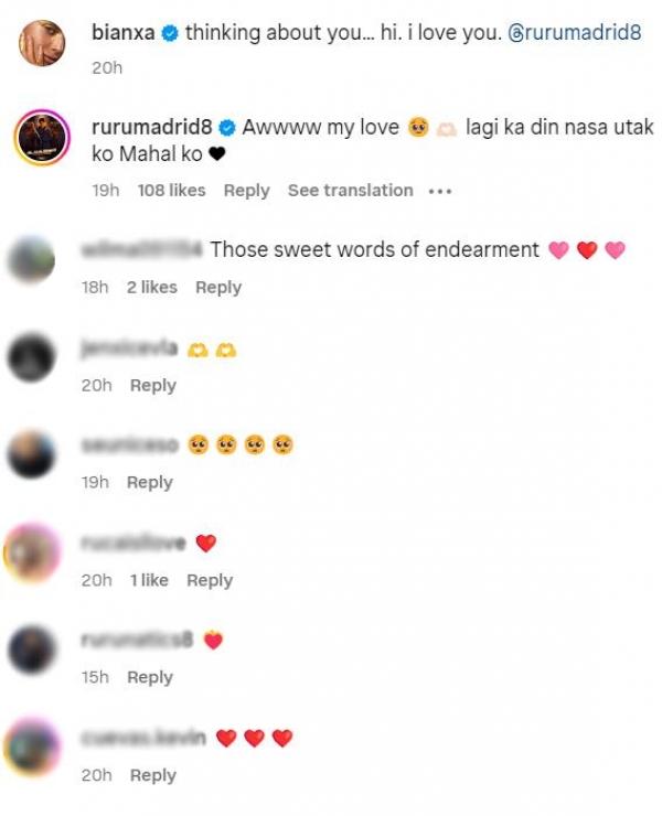 Ruru replied to the kilig-filled post of his girlfriend, “Awwww my love lagi ka din nasa utak ko Mahal ko.”