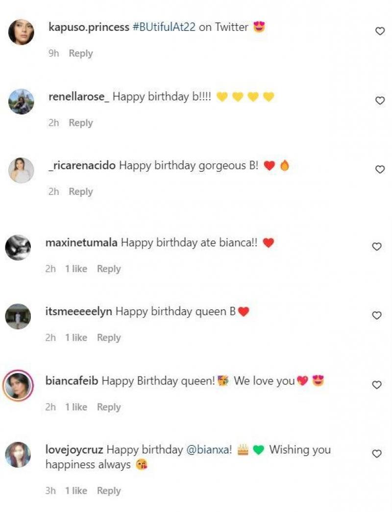 Several stars and netizens took to Instagram to greet Bianca on her special day including Asia's Limitless star Julie Anne San Jose, Kapamilya talent Iza Calzado, and Pepito Manaloto actress Mikee Quintos, to name a few.