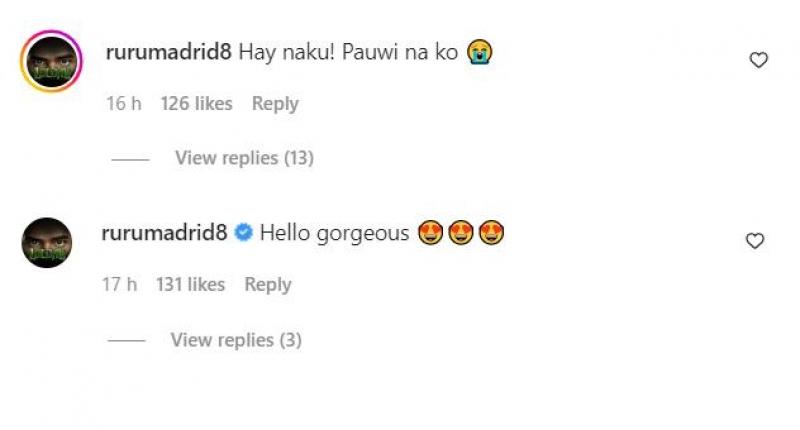 Ruru Madrid could not help leaving messages and emojis in the comments section. In one message, he even wrote, "Hay naku! Pauwi na ko"
