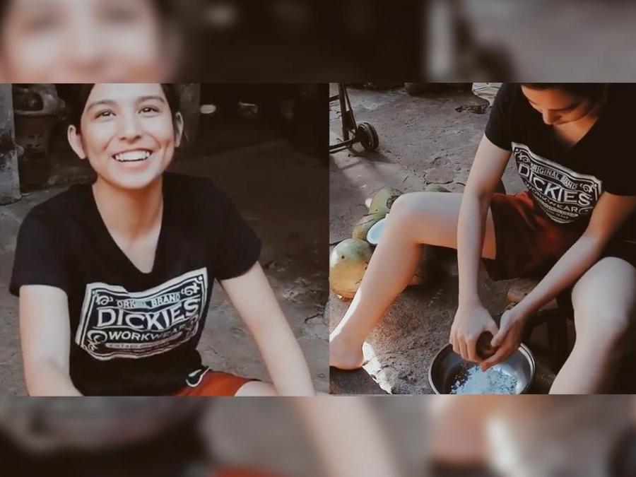 In a post on Instagram, Kyline showed how she scraped coconut while revealing that she used to do it as a kid.
