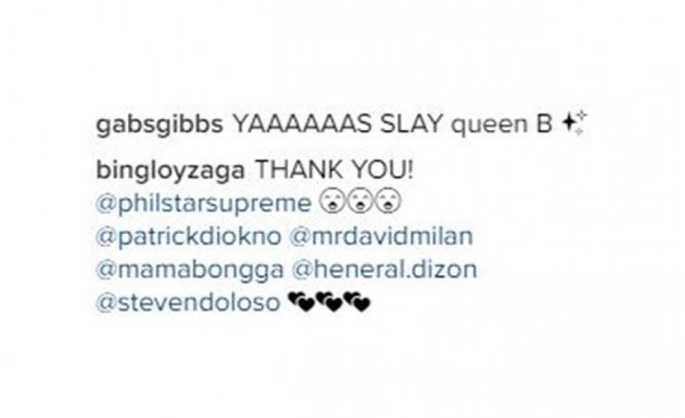 Bing's younger daughter Gabs could not stop herself from commenting on her mom's photo.