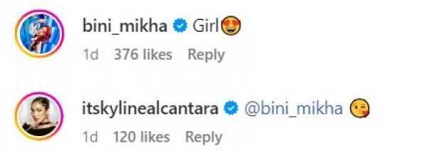 Mikha Lim of BINI showed her support with a brief comment, "Girl," Mikha wrote with a heart-eyed emoji. Kyline replied with a kiss face emoji.