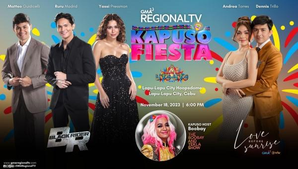 It is indeed a Saturday to watch out for as the lead cast of the full-action series Black Rider, namely Matteo Guidicelli, Yassi Pressman, and Black Rider himself, Primetime Action Hero Ruru Madrid join forces with Kapuso Drama King Dennis Trillo and Sparkle leading lady Andrea Torres of the romantic drama series Love Before Sunrise -- for this year's Lapu-Lapu City Fiesta. Boobay of The Boobay and Tekla Show will host the fun-filled Kapuso Fiesta in Hoopsdome, Lapu-Lapu City at 6 p.m.