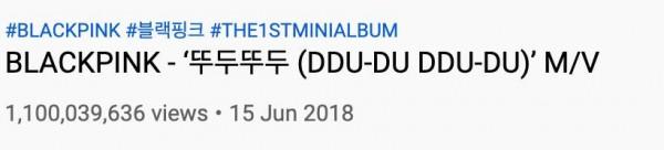 BLACKPINK reaches a new milestone as they become the first K-pop group to hit 1.1 billion views for 'DDU-DU DDU-DU' on YouTube.