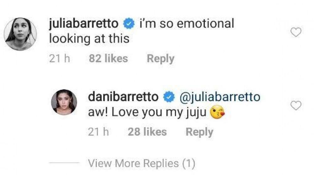 Makikita naman sa comment section ng Instagram post ni Dani, sinabi ng half sister niyang si Julia Barretto na naiyak siya nang makita ang larawan ng kapatid.