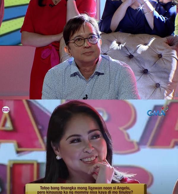 Tanong ng host na si Carmina Villarroel kay Bobby, "Totoo bang tinangka mong ligawan noon si Angelu, pero kinausap ka ng mommy niya kaya hindi mo itinuloy?"