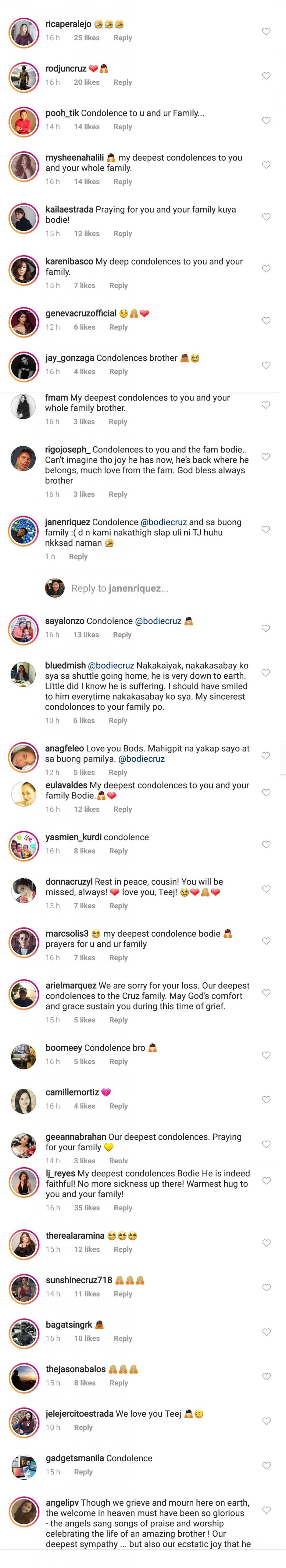 “And at a very early age he has gone back to the arms of our Father. Rest well, TJ Cruz. You will be so missed.”