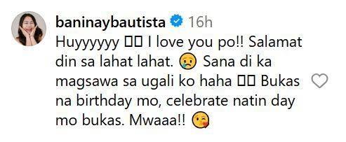Baninay continued, "Sana di ka magsawa sa ugali ko haha… Bukas na birthday mo, celebrate natin day mo bukas. Mwaaa!!"