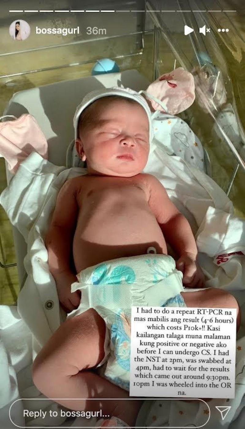 “I had to do a repeat RT-PCR na mas mabilis ang result (4-6 hours) which costs P10k+!! Kasi kailangan talaga muna malaman kung positive or negative ako before I can undergo CS. I had the NST at 2pm, was swabbed at 4pm, had to wait for the results which came out around 9:30pm. 10pm I was wheeled into the OR na.” paglalahad pa ni Sitti.