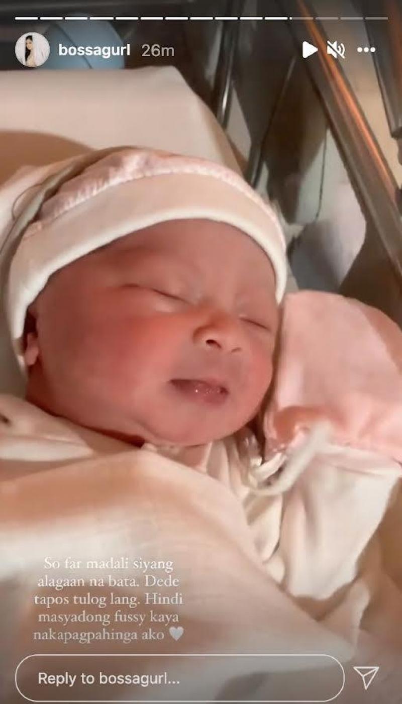 “So far madali siyang alagaan na bata (Baby Osseah). Dede tapos tulog lang. Hindi masyadong fussy kaya nakapagpahinga ako.”