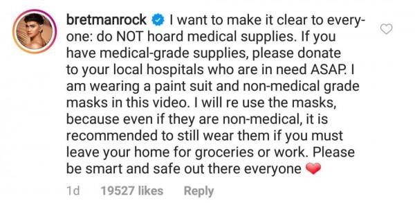 In his new post in the comments section, Bretman reminded his followers to stay safe and avoid hoarding medical supplies.