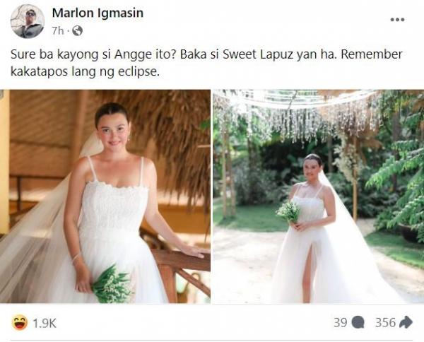 “Sure ba kayong si Angge ito? Baka si Sweet Lapus yan ha. Remember kakatapos lang ng eclipse,” post nito sa isang Facebook group.