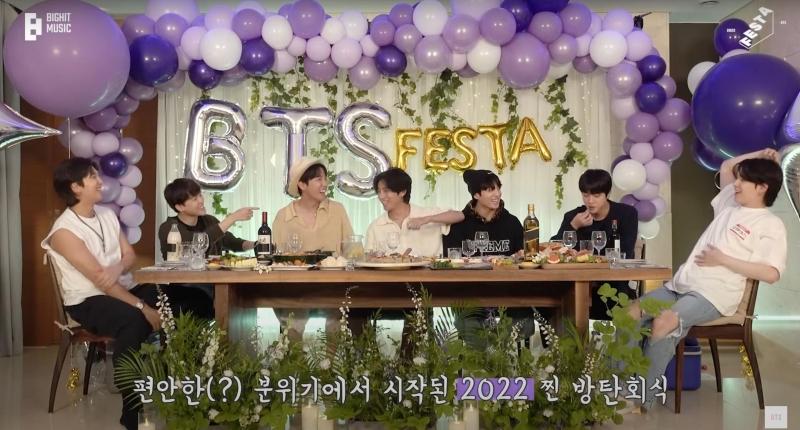 RM started by expressing how happy he is that the group is all together and shooting their Festa dinner then he went on to share his story. He says, “I started music and became BTS because I had a message for the world. I didn't know what I would do after “ON” but then COVID-19 came up so we did 'Dynamite,' 'Butter,' 'Permission to Dance,' and 'Life Goes On,' and I realized the group has definitely changed. We have to accept that we've changed.