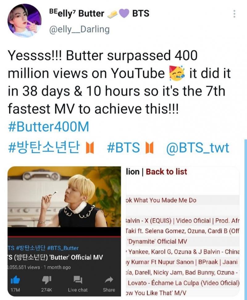 On June 28, Bangtan Sonyeondan, more popularly known as BTS, achieved another record for their music video titled "Butter" which has surpassed 400 million views on YouTube.