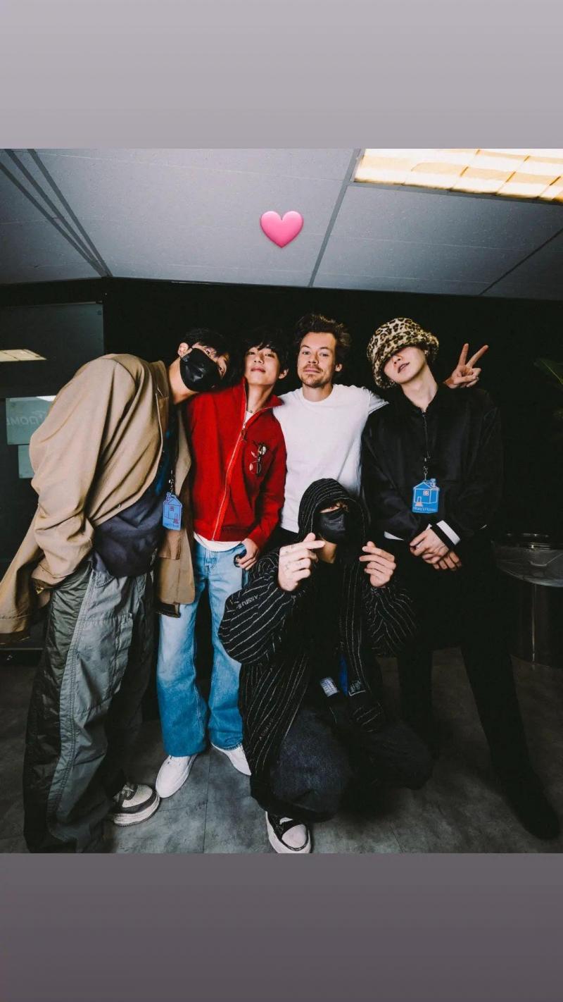 In November 2021, V, Jungkook, J-hope, and Jimin attended Harry's concert in Los Angeles.