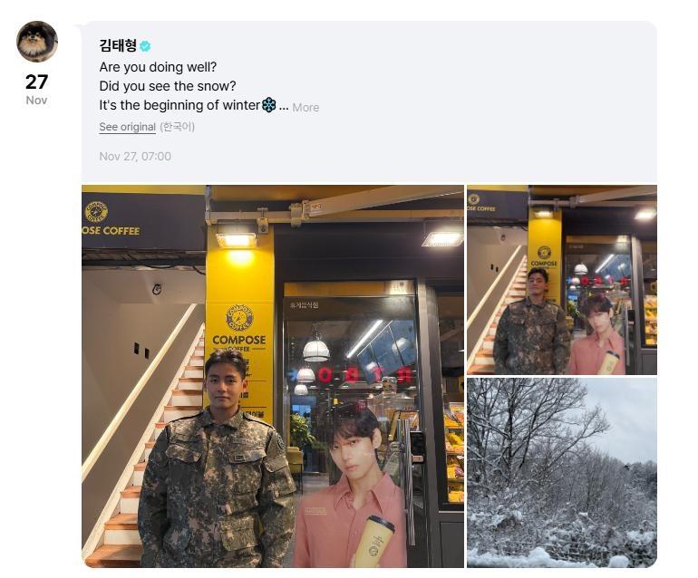 Fans flooded the comment section with admiration for V's photo, leaving heartwarming messages of support. Some even replied with a few reminders for V to stay warm and safe during the cold season.