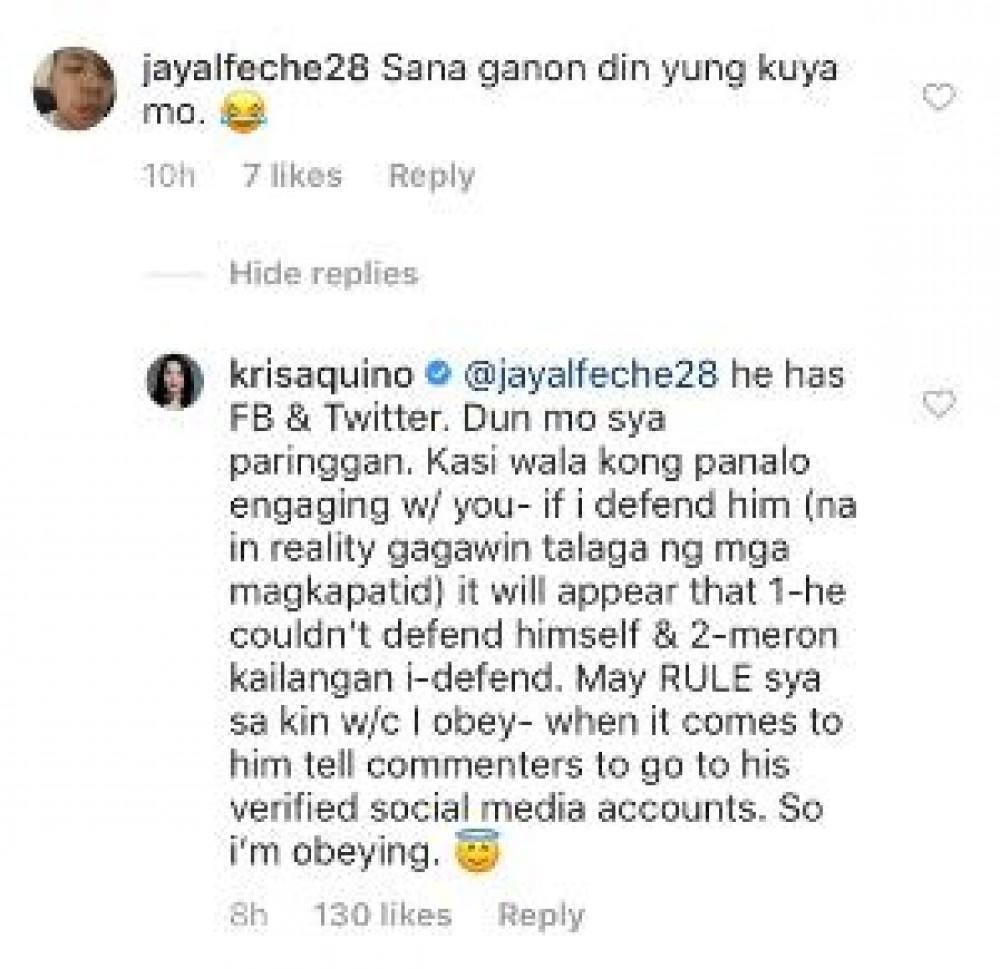 Ano ang naging sagot ni Kris Aquino sa comment ng isang netizen para sa kanyang kapatid na si dating presidente Noynoy?