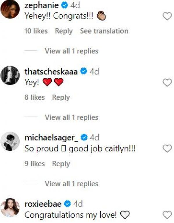 Caitlyn's fellow Kapuso stars like Zephanie, Cheska Fausto, Michael Sager, and Roxie Smith sent their congratulatory messages for the actress in the comments section.