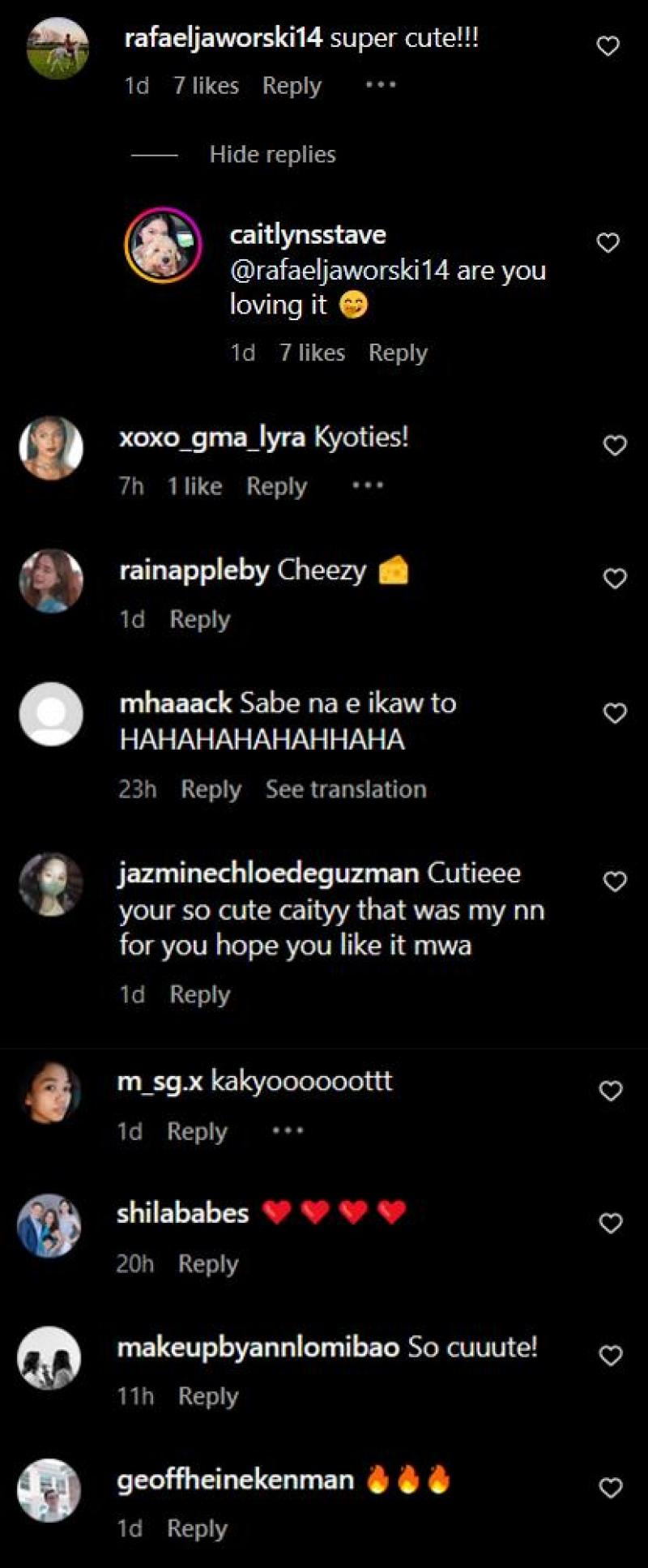 In Caitlyn's Instagram post of the ad, Rafael Jaworski, Mikee Cojuanco-Jaworski, and Pasig City Vice Mayor Dodot Jaworski commented on how the young actress looks “super cute.”