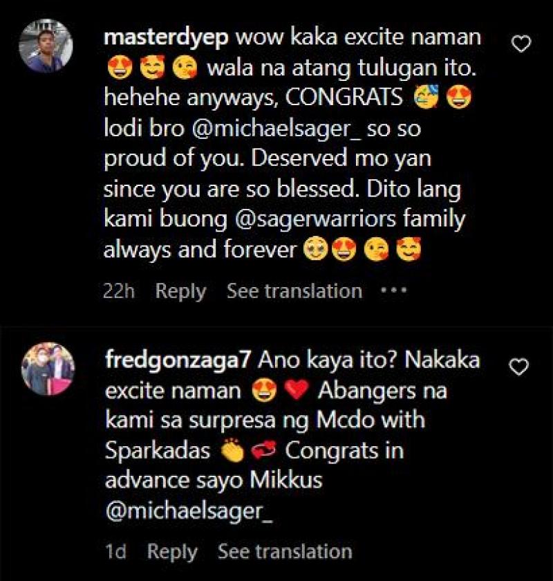 “Congrats in advance sa'yo Mikkus @michaelsager_” another fan commented.