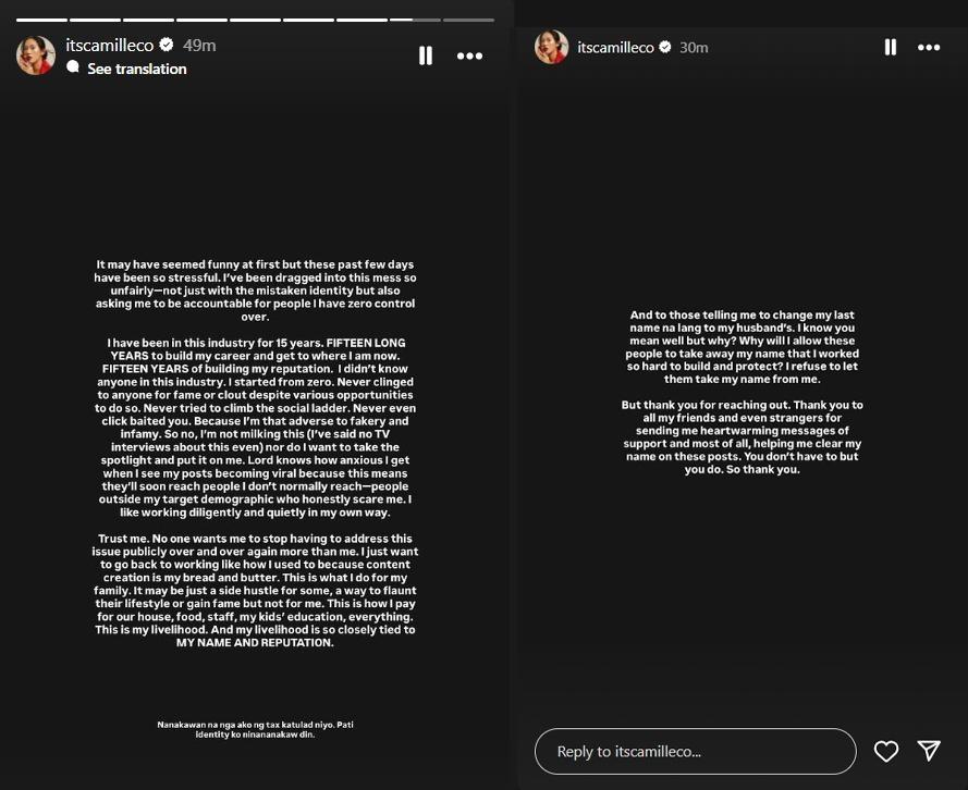 Camille stressed to the public, “I just want to go back to working like how I used to because content creation is my bread and butter. This is what I do for my family… This is how I pay for our house, food, staff, my kids' education, everything. This is my livelihood.”