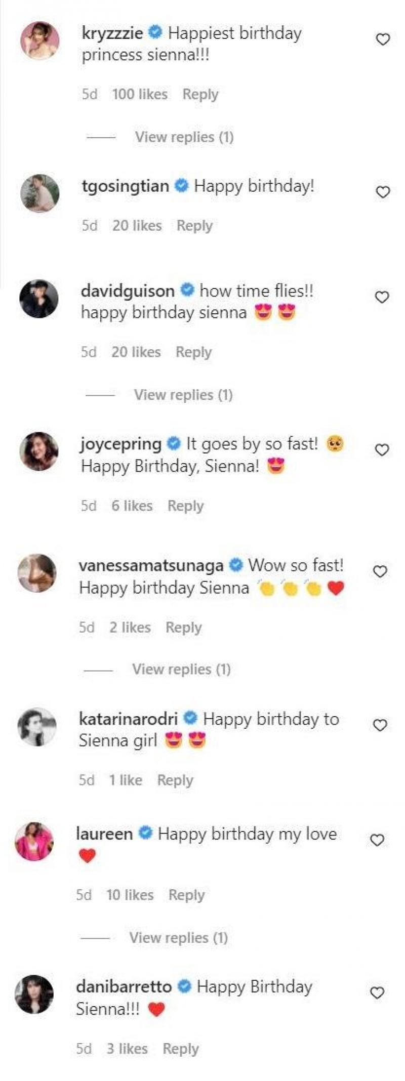 Sienna also received a ton of birthday greetings from celebrities and vloggers including Laureen Uy, David Guison, and Kapuso host Joyce Pring.