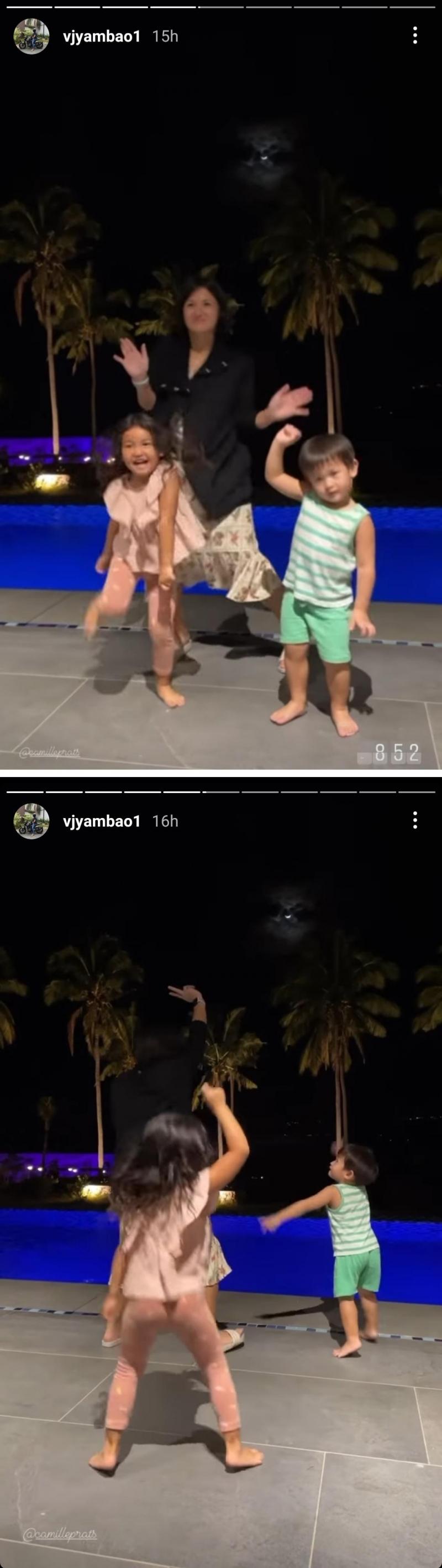 VJ also captured a video of the actress-host dancing with their two children, Nala and Nolan, by the swimming pool.