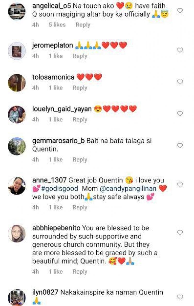 “Awwww…. Thank you kuya's and lolo's. Sana I can find someone to train Quentin to be an official altar server soon,” shared Candy.
