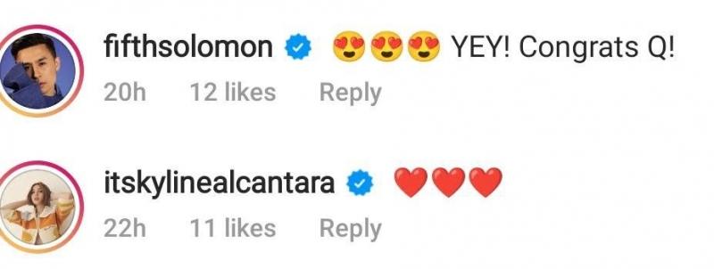 Local celebrities Kyline Alcantara and Fifth Solomon expressed their support and love for Quentin and left heart emojis.