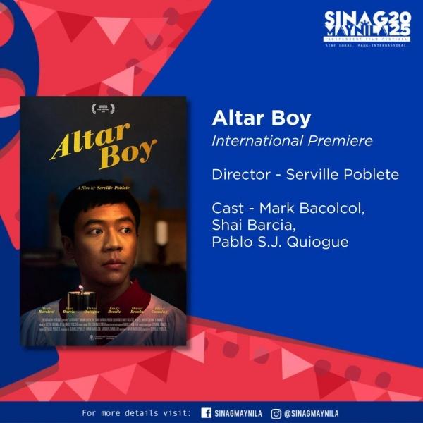 Director Serville Poblete's Altar Boy features Mark Bacolcol, Shai Barcia, and Pablo S.J. Quiogue.
