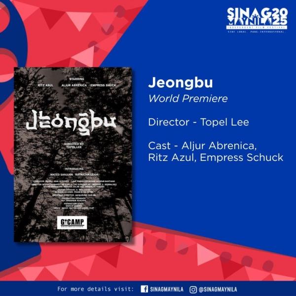Joining also for the first time is director Topel Lee, who offers another horror film titled Jeongbu, starring Aljur Abrenica, Ritz Azul, Empress Schuck.