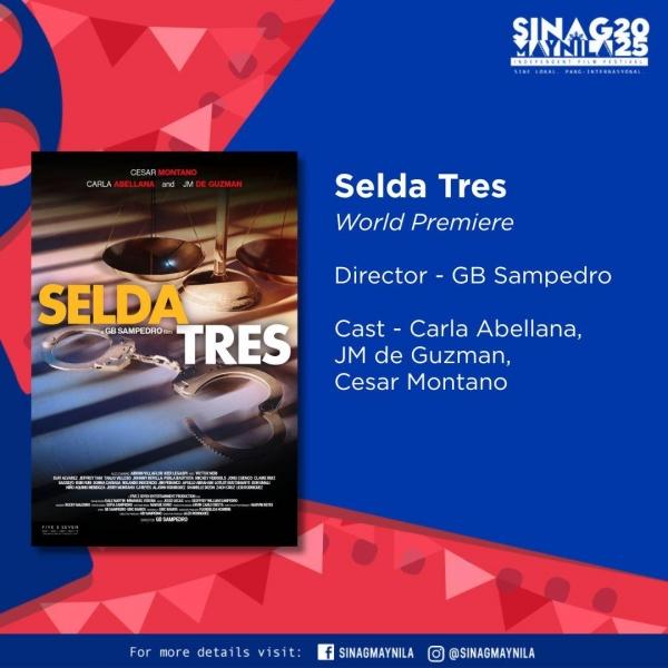 Director GB Sampedro joins the festival for the first time via his film Selda Tres, featuring Carla Abellana, JM De Guzman, and Cesar Montano.