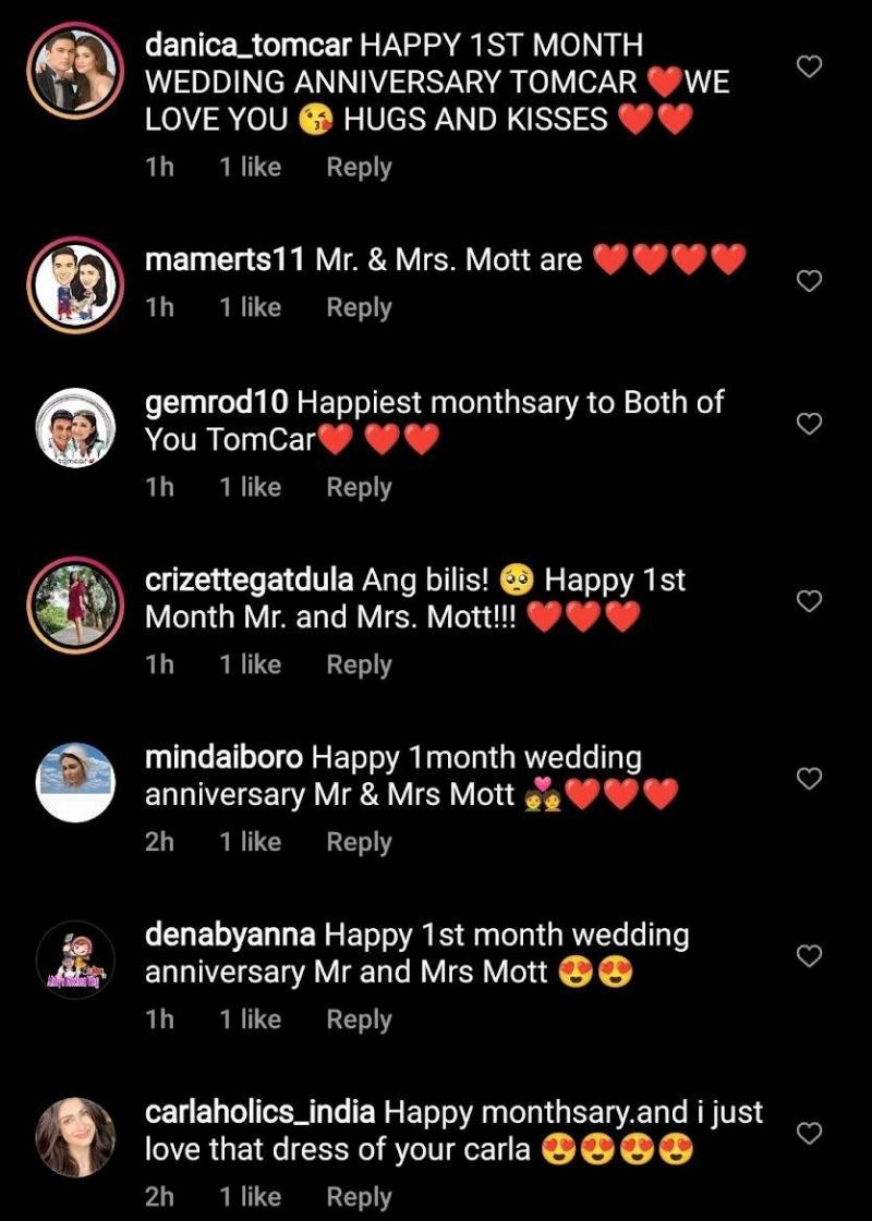 Of course, fans and netizens also showered the comments section with sincere greetings for Mr. and Mrs. Mott's first month as a married couple.