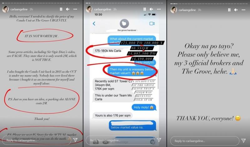 Sunod-sunod ang kanyang post sa Instagram Stories kamakailan para itinama ang mga naglalabasang balita tungkol sa halaga ng kanyang property, na diuamno'y aabot sa PhP2 million.
