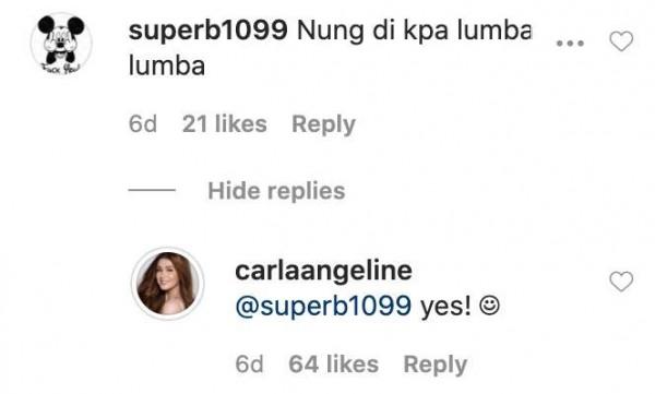 Tugon ni Carla, “Yes!” na sinabayan pa ng smiling emoji.