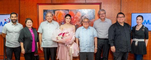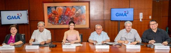 (From left to right) Senior Vice President for Entertainment Group Lilybeth G. Rasonable, President and Chief Executive Officer Gilberto R. Duavit, Jr., Carla Abellana, GMA Chairman Atty. Felipe L. Gozon, Executive Vice President and Chief Financial Officer Felipe S. Yalong, and Triple A Management President and CEO Michael B. Tuviera