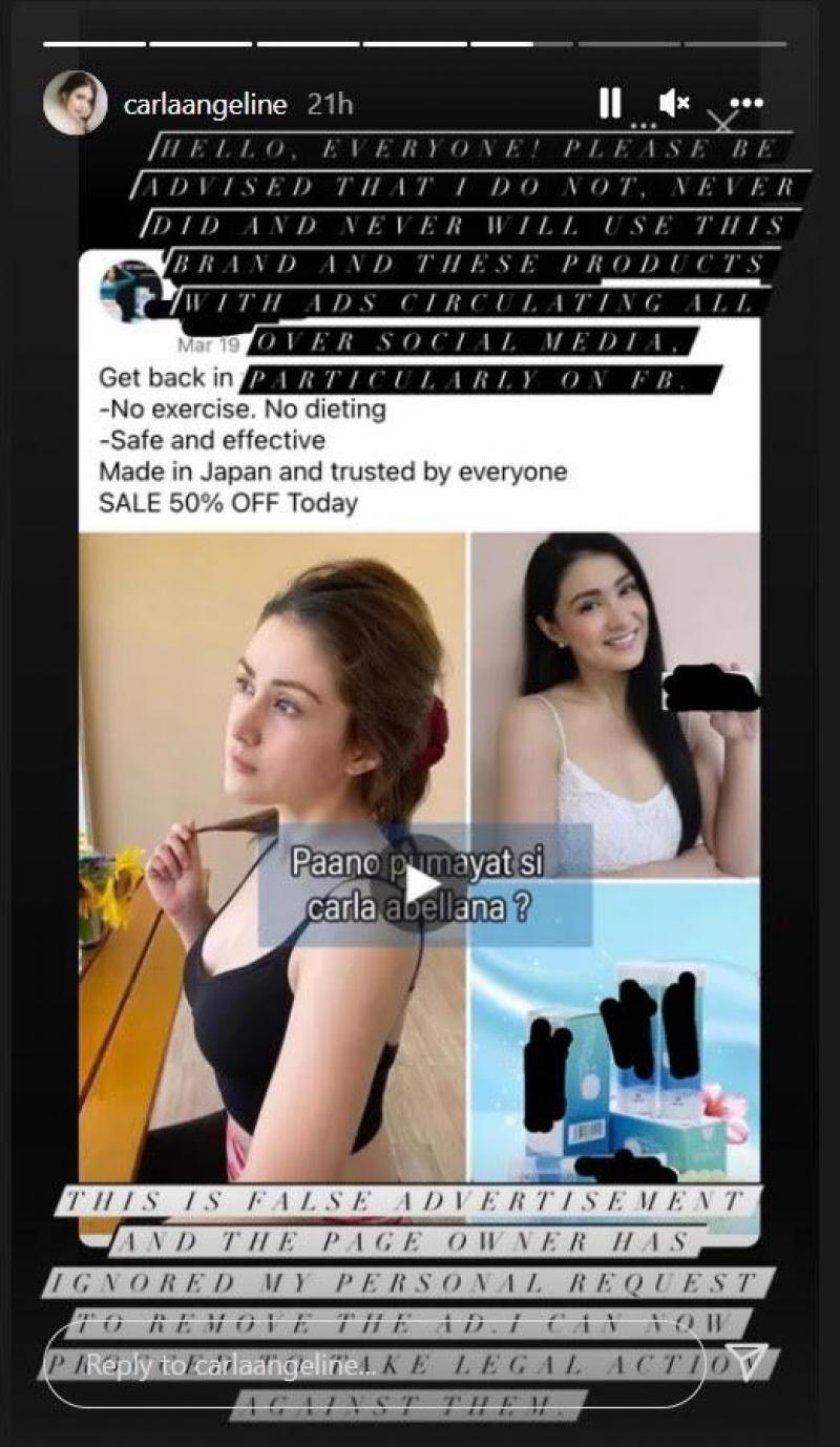 Kapuso Primetime star Carla Abellana had enough of the fake advertisements circulating online using her photos to promote a certain product that she does not endorse.